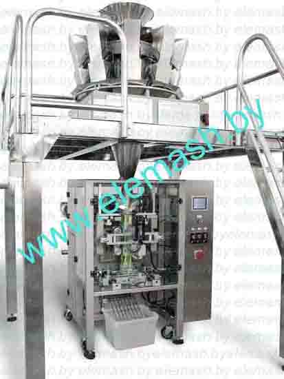 Máquina de embalaje vertical KOMBI-МК permite embalar productos de flujo libre y productos por piezas pequeñas en varias industrias. La máquina está equipada con dosificador pesador multicabezal y permite embalar una amplia gama de productos (cereales, nueces, café, dulces, turradas, patatas fritas, bizcochos, verduras congeladas, etc.).
