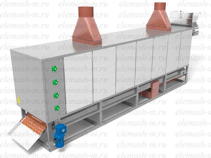 La línea consta de un bastidor, cámara de tostado, transportadores, bloque de calefacción, transportador de enfriamiento, un bloque de ventiladores de refrigeración, panel de control.