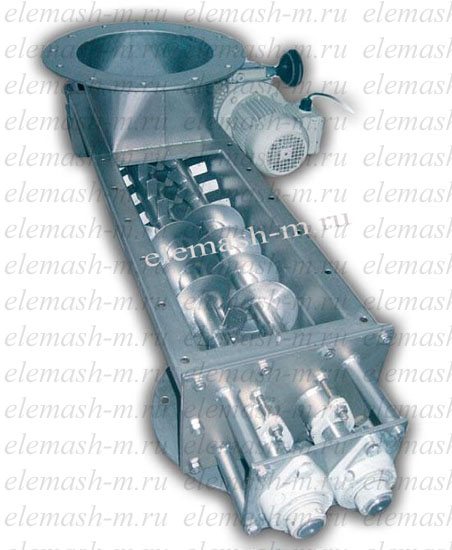Alimentador de doble tornillo se utiliza en las sistemas de dosificación de productos en polvo. La existencia de dos tornillos garantiza una alta precisión y una velocidad de dosificacion de los materiales. Se produce en forma abierta (bandeja en forma de U) y en forma cerrada (en el tubo). Material del producto, capacidad y otros requisitos están acordados con el cliente.