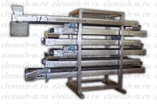 Transportador de refrigeración se usa en las líneas de producción para la refrigeración continua de bizcochos, rosquillas, galletas. Se fabrica por encargo. Cumple la función de transporte y de refrigeración. Para mayor facilidad, puede ser producido en una forma suspendida, ahorrando así el puesto de trabajo del suelo y liberando los flujos de transporte en las localidades.