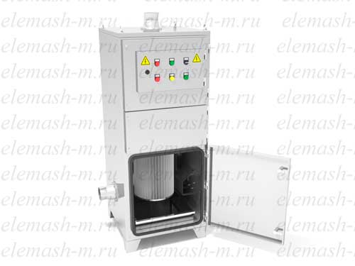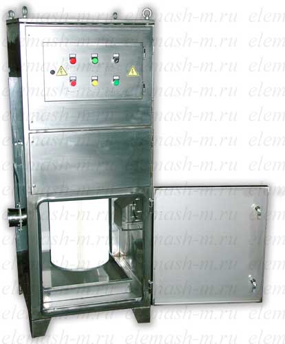 Las unidades de succión constan de una cámara de aspiración con un filtro rígido, una cámara de trabajo donde se disponen el ventilador de aspiración y el vibrador de agitación de filtro, armario de control electríco. La cámara de trabajo para reducir el nivel del ruido está protegida por el material aislante contra el sonido. Panel de control permite al operador conectar y desconectar la unidad, sacudir el filtro.